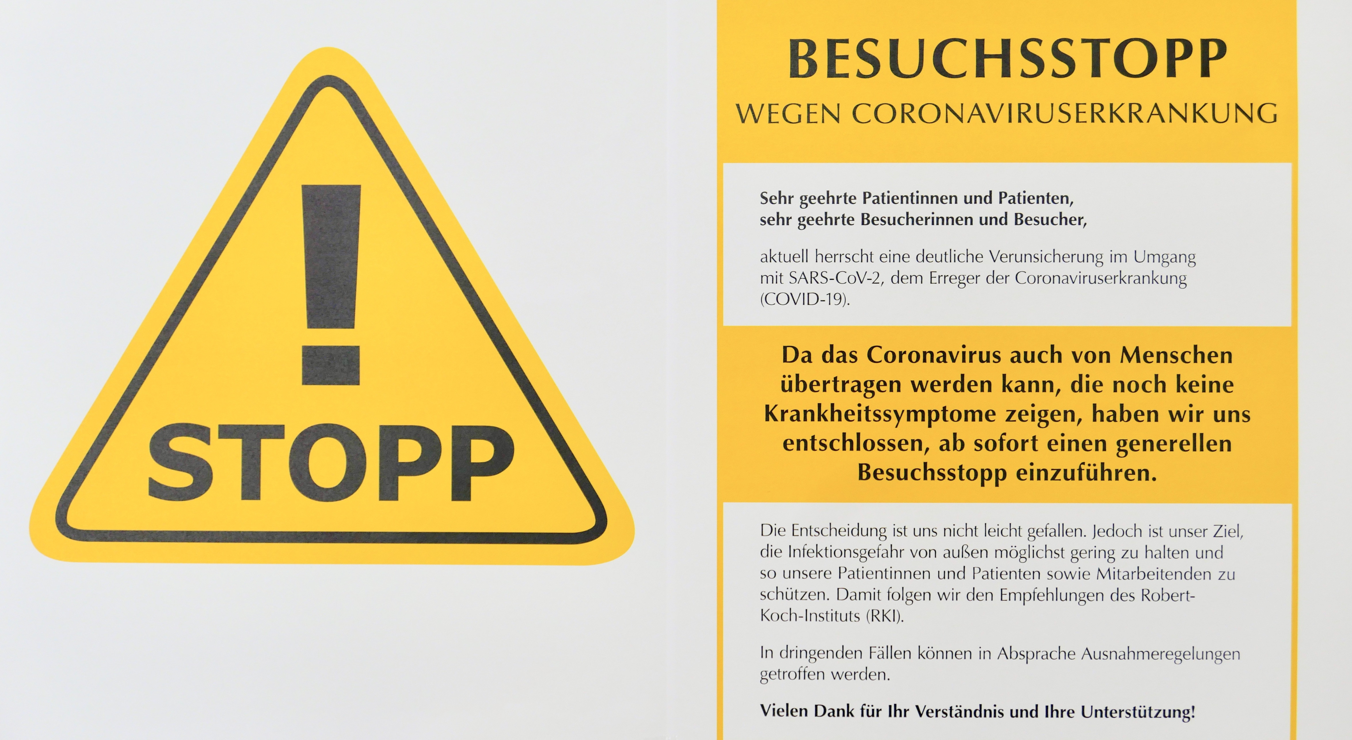 In der Pressemitteilung der Hessischen Krankenhausgesellschaft (HKG) vom 16. März 2020 heißt es: Noch ist die Zahl der COVID-19-Patienten, die in Hessen stationär behandelt werden müssen, überschaubar. Der Blick nach Italien zeigt jedoch, dass sich dies ändern wird. Die Krankenhäuser in Hessen, die niedergelassenen Ärzte und die staatlichen Stellen treffen seit Wochen gemeinsam alle notwendigen Vorkehrungen, um jetzt und in Zukunft die Versorgung sicherzustellen. Wir appellieren an die Bürgerinnen und Bürger: Jeder kann seinen Beitrag dazu leisten, die derzeitige Herausforderung zu meistern. „Wir appellieren an alle Bürgerinnen und Bürger, der Verordnung des Landes Hessen zur Einschränkung der Besuche in Krankenhäuser Folge zu leisten. Nur so kann sichergestellt werden, dass wir COVID-19 nicht in die Krankenhäuser tragen. Schützen Sie unsere Gesundheitsinfrastruktur! Wir müssen jedes unnötige Risiko vermeiden, dass Pflegende und Ärzte infiziert werden. Darum können Besuche in Krankenhäusern nur in Ausnahmefällen gestattet werden“, so Dr. Christian Höftberger, Präsident der Hessischen Krankenhausgesellschaft.