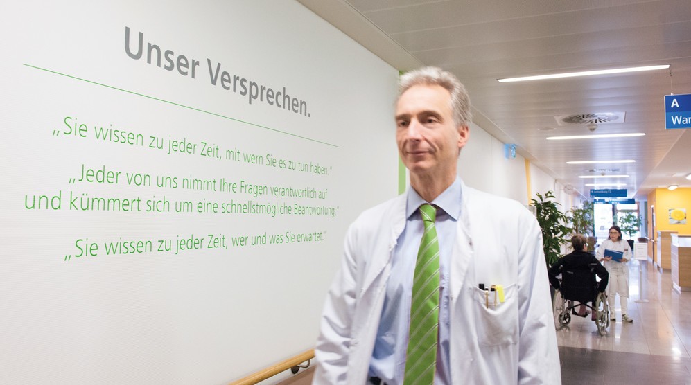 Im Kern des Prozesses steht eine kleine Fibel, kaum größer als die Fläche einer Hand und weniger als 30 Seiten stark. In ihr ist in groß gesetzter Schrift „Unser Versprechen“ aller Mitarbeiter auf allen Hierarchieebenen der Klinik zusammengefasst. Das Büchlein hat jeder, der in der Klinik arbeitet. Zudem sind die wichtigsten Versprechen auf den Fluren und in den Zimmern plakatiert. Dort stehen Sätze wie dieser: „Bei der Einweisung erhält jede Patientin eine Mitteilung, wer für sie verantwortlich ist“ oder jener: „Die Patientin weiß zu jeder Zeit, auf wen und was sie wartet“. Die Versprechen lesen sich wie eine Zusammenstellung von Selbstverständlichkeiten. Doch im Klinikalltag ist das Selbstverständliche offenbar nicht selten die Ausnahme. Wenn Sie mehr lesen wollen: